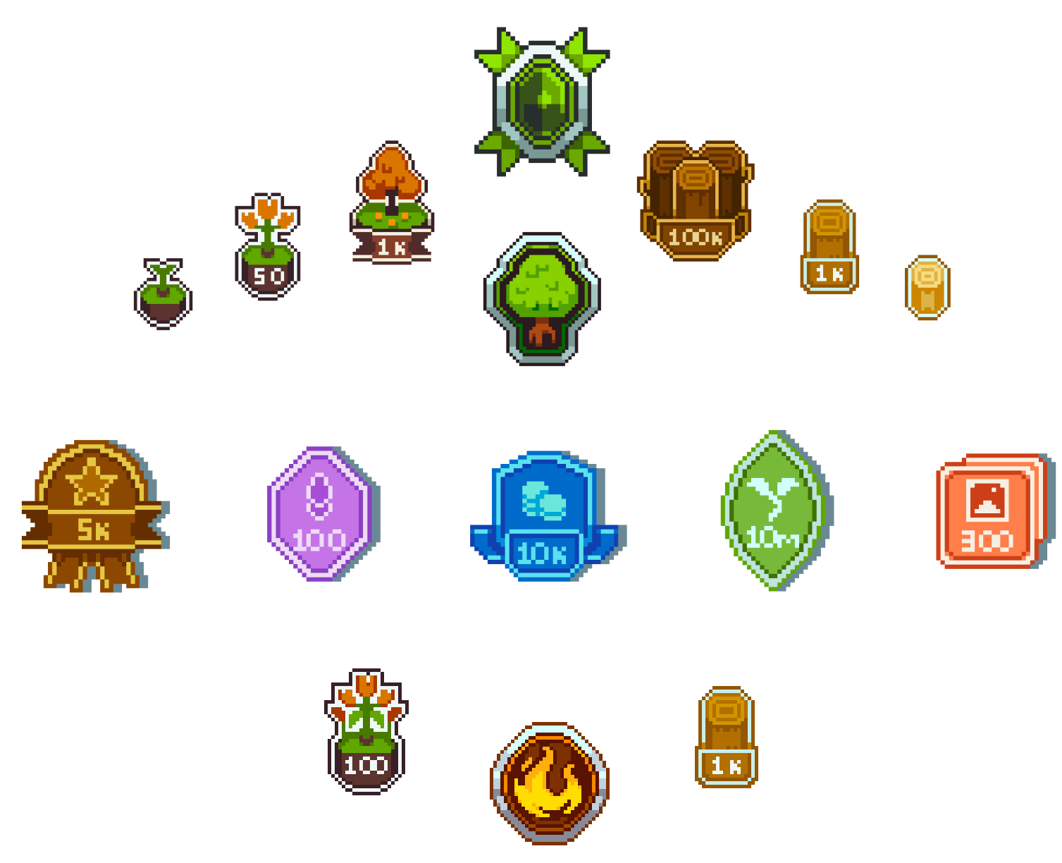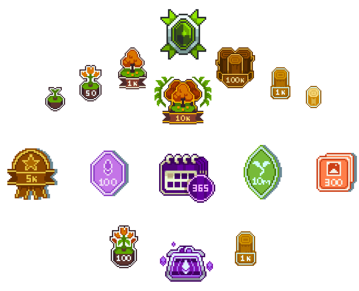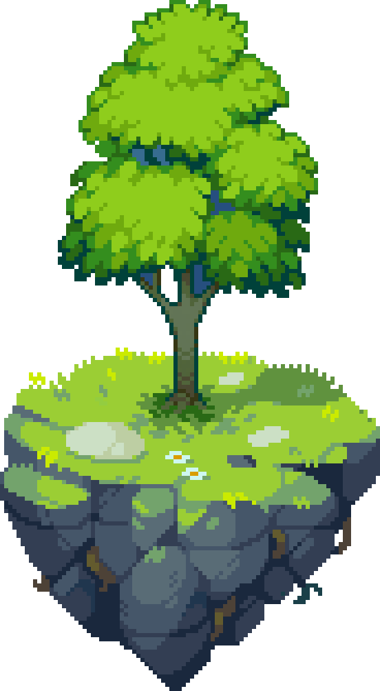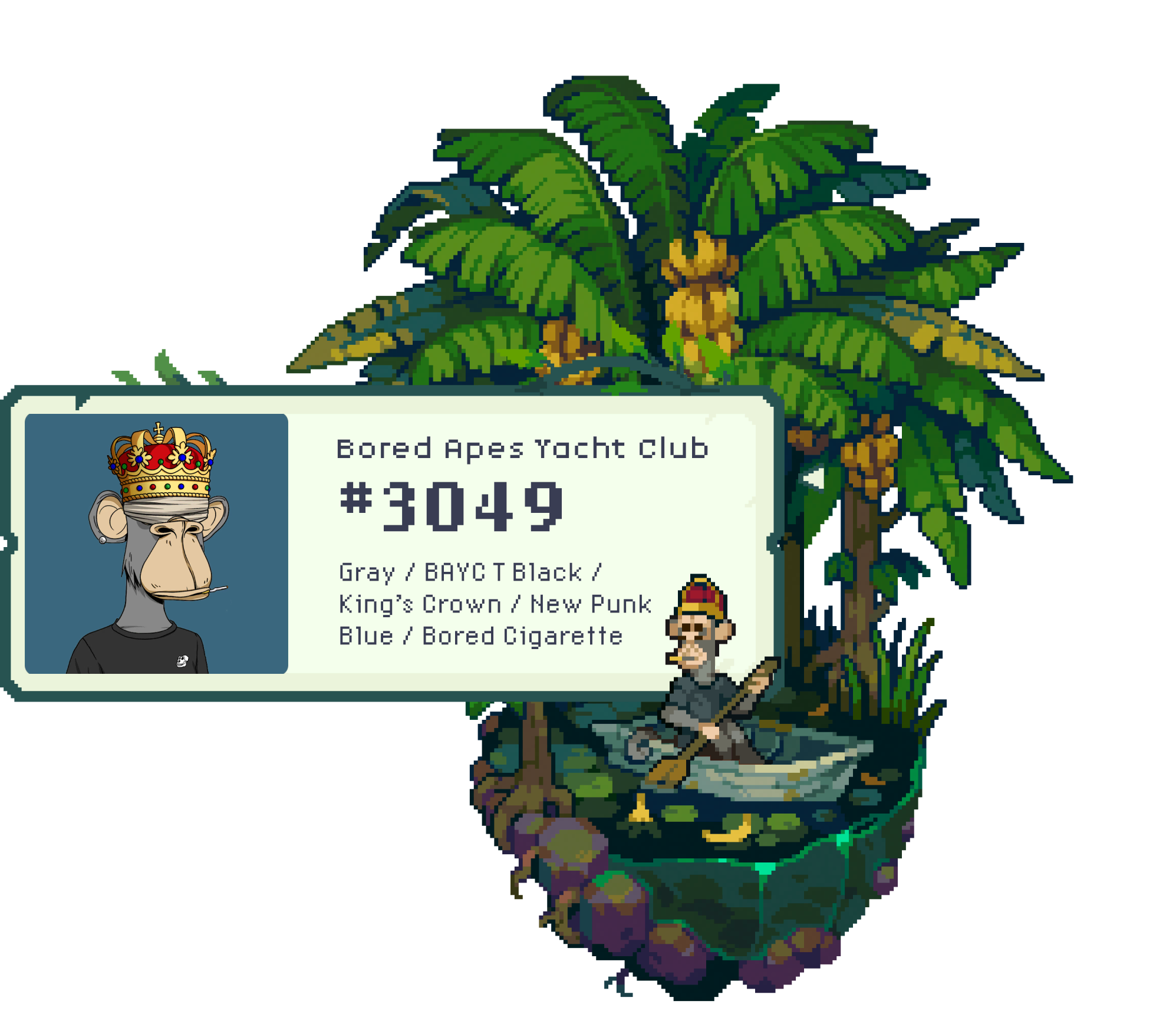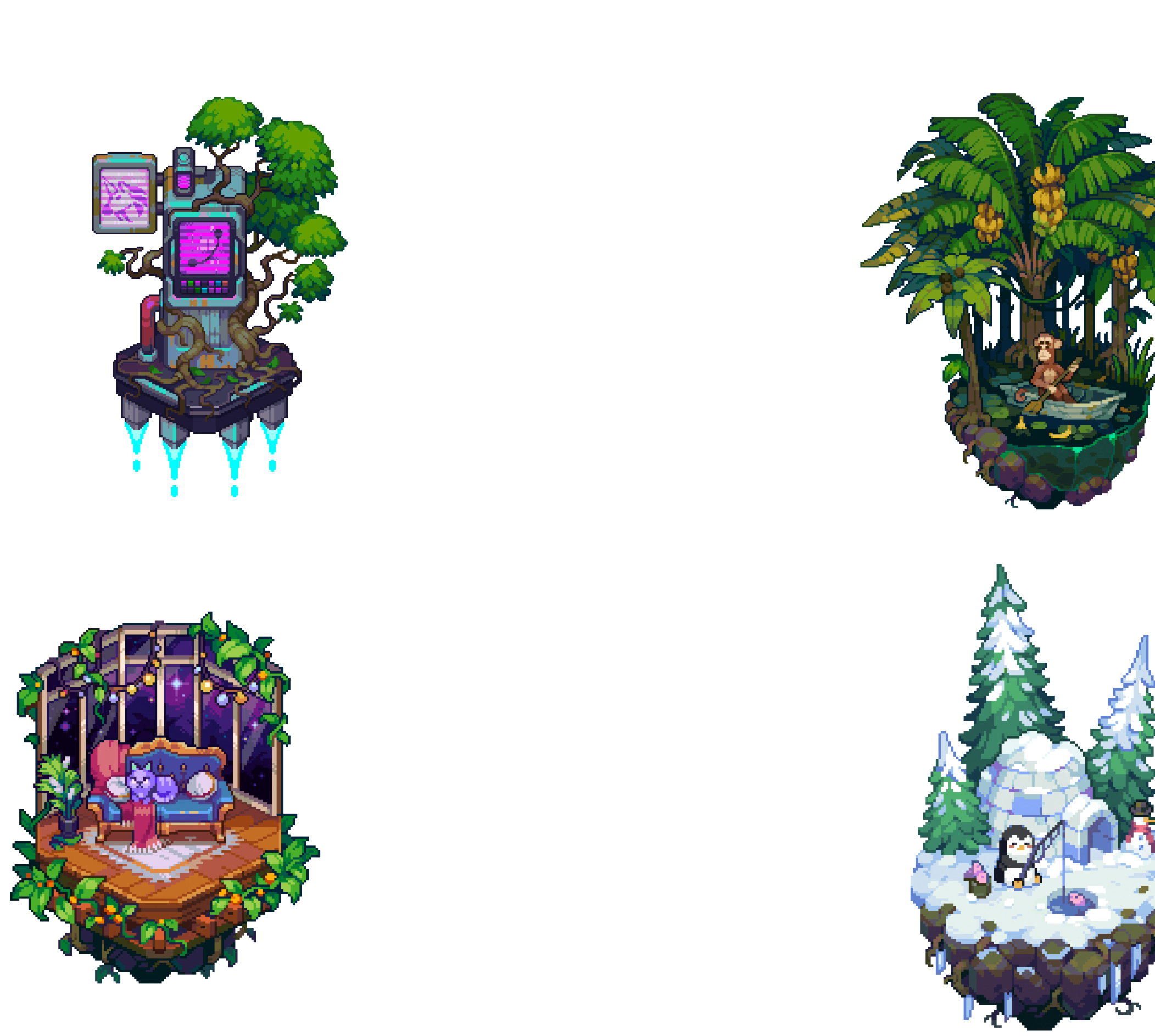 Within your garden, each island represents an asset from your collection, drawn in intricate pixel art.