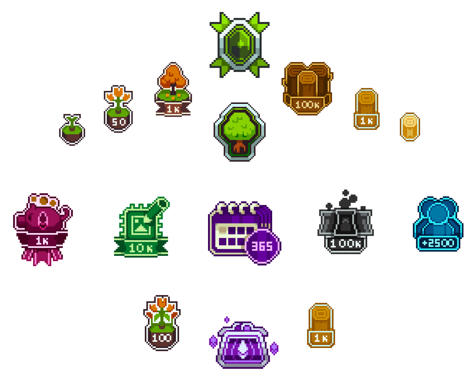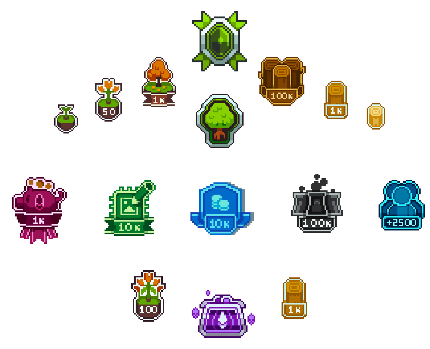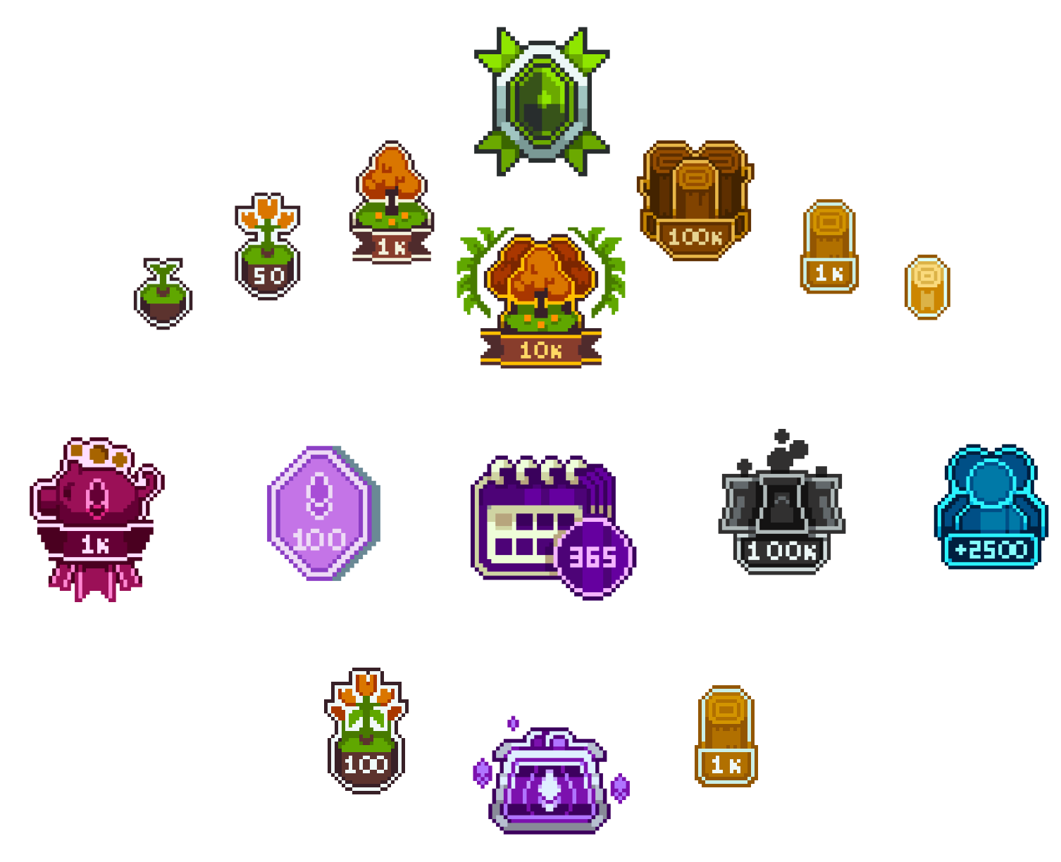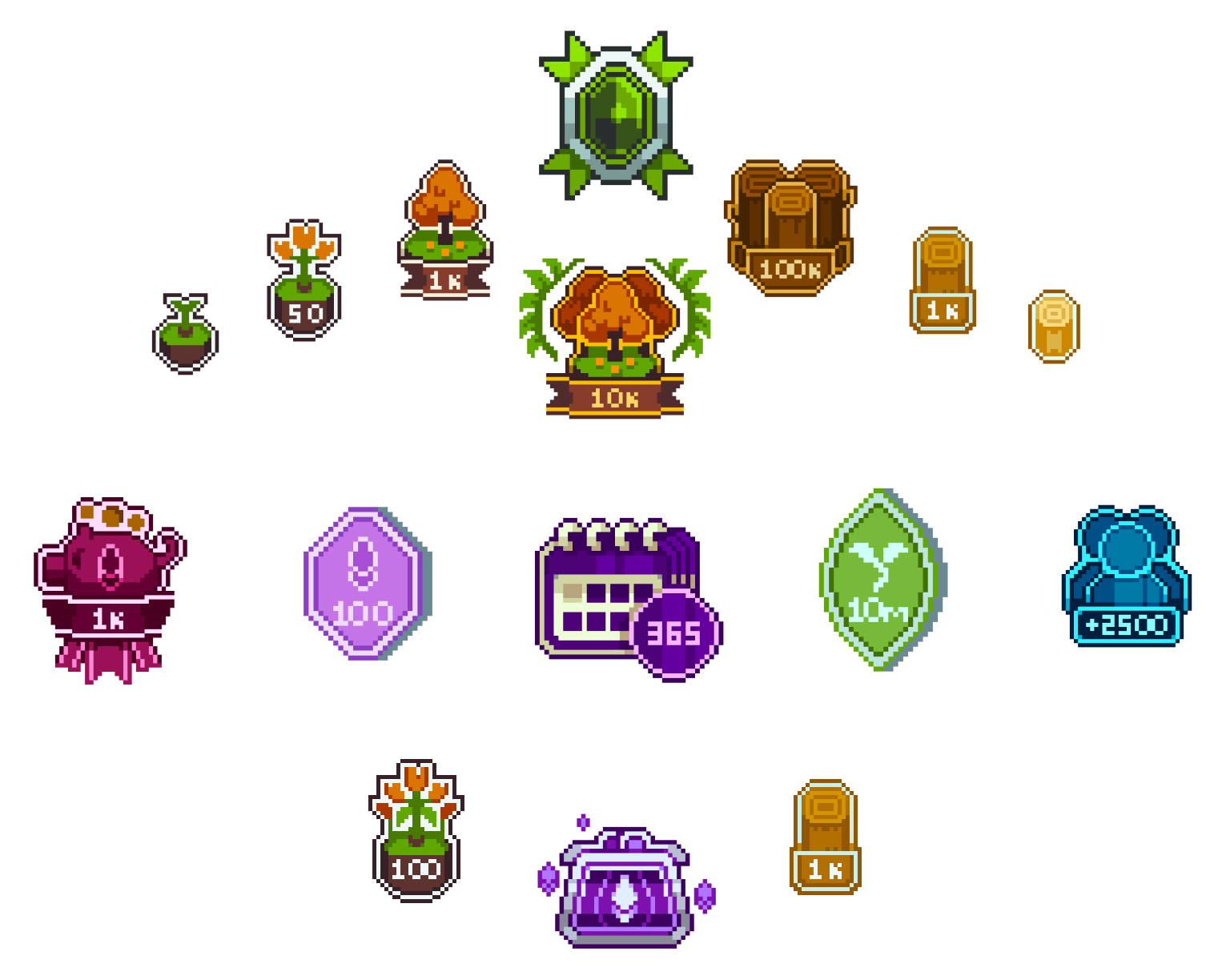 Within your garden, each island represents an asset from your collection, drawn in intricate pixel art.